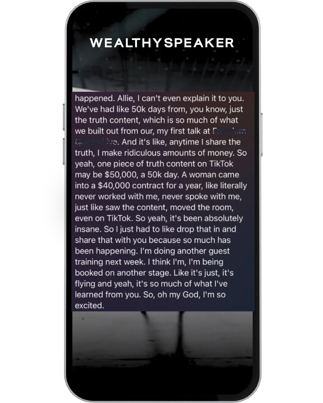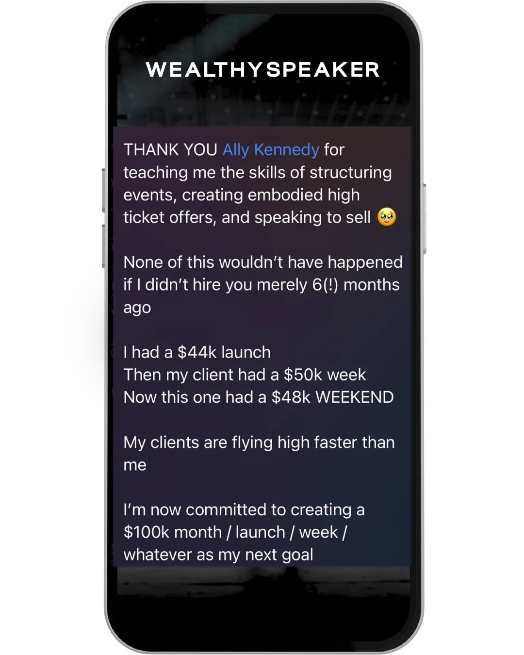 Come behind the scenes as Ally emcees a 500-person event. She’s spoken on stages with icons like Jen Gottlieb, Adley Kinsman, Russell Brunson, and McCall Jones — using the same Wealthy Speaker Roadmap & methodologies taught inside of Wealthy Speaker to create $100K+ days for Wealthy Speaker and her clients. Ally is flown around the world and paid 5-figures to speak, helping clients sell $10K, $25K, even $40K offers from the stage — and she breaks down the exact step-by-step roadmap for you to do the same inside of Wealthy Speaker.